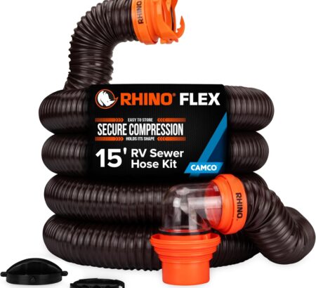 Camco RhinoFLEX 15-Ft RV Sewer Hose Kit – Features Clear Elbow Fitting w/Removable 4-in-1 Adapter$54.99 -